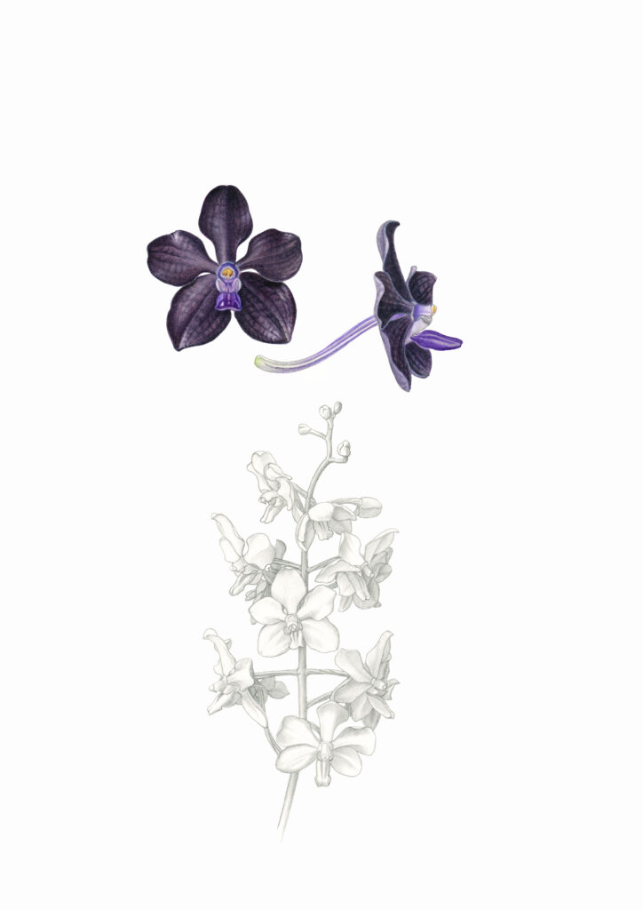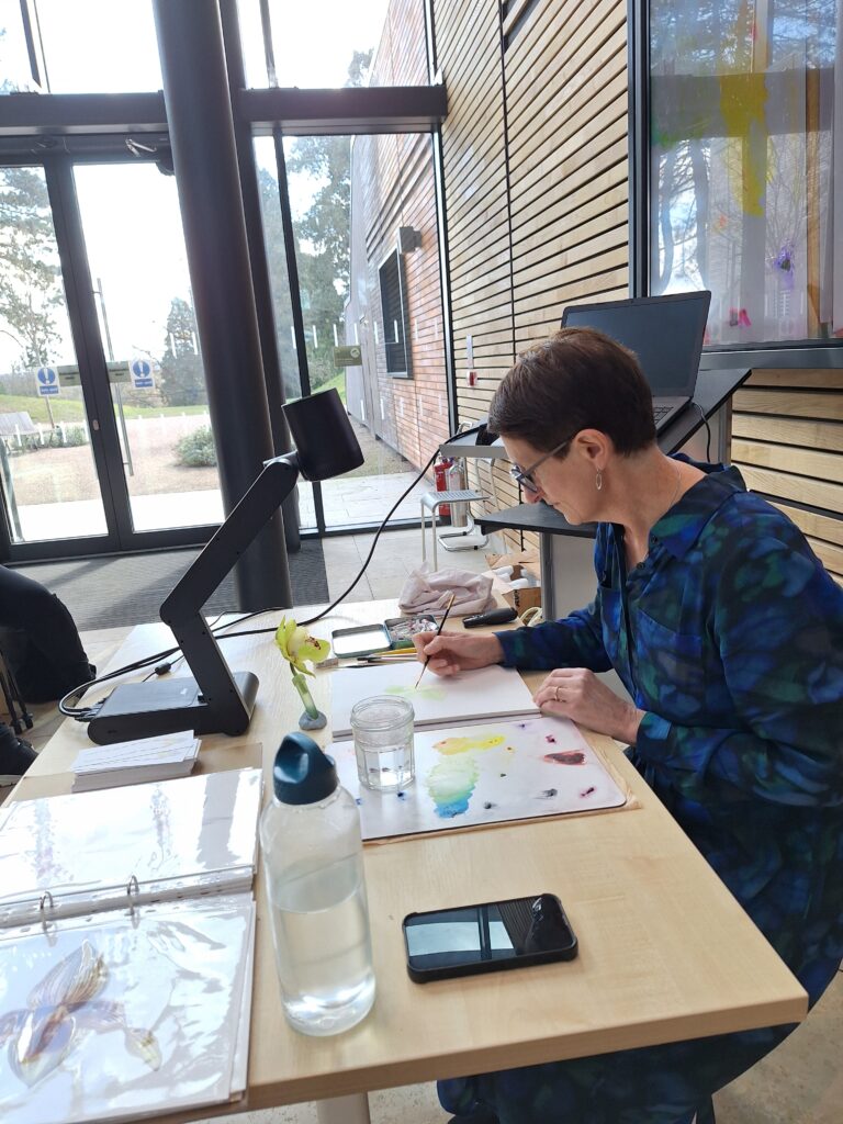 Since then, I have painted over 500 orchid illustrations for the RHS Collections at the Lindley Library, London which now numbers over 7,000 orchid portraits. These paintings are exhibited regularly at the RHS Gardens and I endeavour to share my orchid paintings through teaching, talks and exhibitions whenever possible.