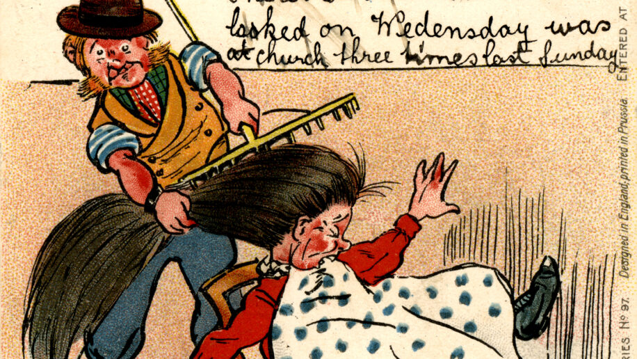 A cigarette card published by Wills’s from their ‘Air Raid Precautions’ series issued during World War II and showing ‘A Garden Dug-Out’ bomb shelter with a woman shining a torch and man wearing a gas mask. Dug into your lawn and covered with earth, the claims for this design include it being ‘gas-proof and will give protection from blast and splinters from high explosive bombs.’
