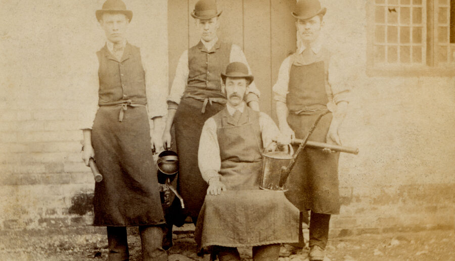 A photograph of a vicar on a lawn in the back garden of a suburban house. Annotated on the back, ‘St Barnabas, Epsom, Vicarage Fete 1961.’