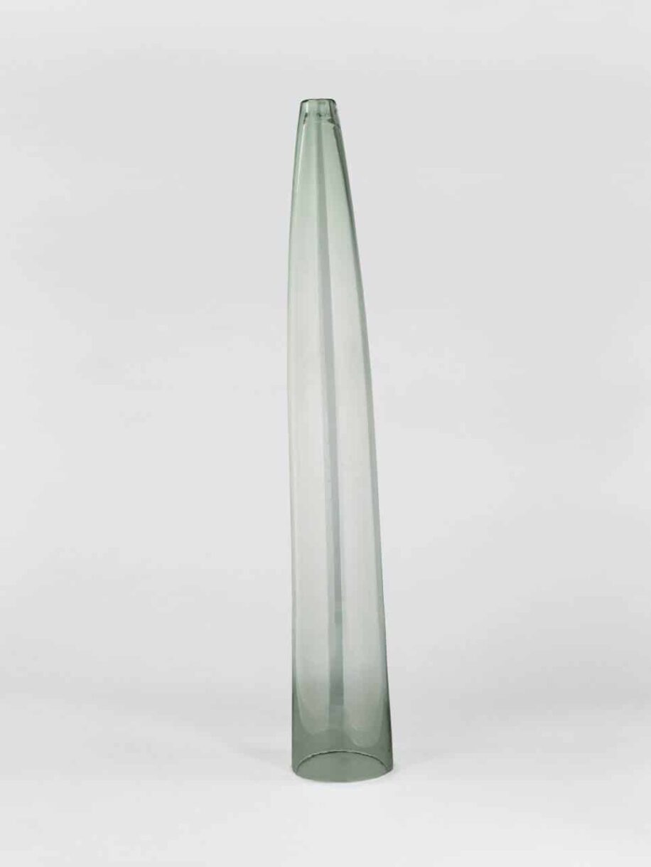 The cucumber straightener was invented by the great engineer George Stephenson (1781–1848), a keen fruit grower who took great pride in the growth of his cucumbers. Stephenson ordered blown glass cylinders to be made at his Newcastle steam engine factory for his garden at Tapton House, Derbyshire, where he spent the last ten years of his life. The elongated glass funnel was placed over the cucumber at an early stage to encourage the fruit to grow straight. Technological innovations in the 19th century had a great impact on food production in Britain. The straight cucumber, a purely aesthetic advancement, symbolises the Victorian obsession with rationalising nature. Straight cucumbers are still in demand. Supermarkets use a simple test to determine whether a cucumber is straight enough to sell: lay the cucumber flat on a surface and if a hand fits comfortably under the bend it is discarded. Today, a bendy cucumber is a home-grown cucumber. Purchased with the assistance of the National Heritage Memorial Fund.