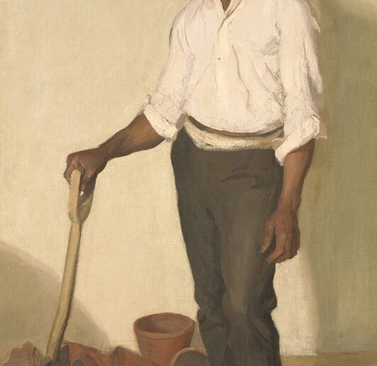 Hand-drawn postcard from World War I, of a man on a bicycle laden with tools & basket of potatoes cycling past an ‘Allotments to Let’ sign. The cyclist is pursued by a boy running alongside with text: “Hi! Billy Come on let’s foller ‘im” – “Wot for?” – “Spuds! Why ‘e might skid”. Dated and signed by the artist (initials) ‘F.R.B. 26.7.17’. F R Bolton sent this card from 8 Dragon Terrace, Harrogate, to his niece Elsie G. Bolton at the Telephone Dept., G.P.O. Hull in Yorkshire.