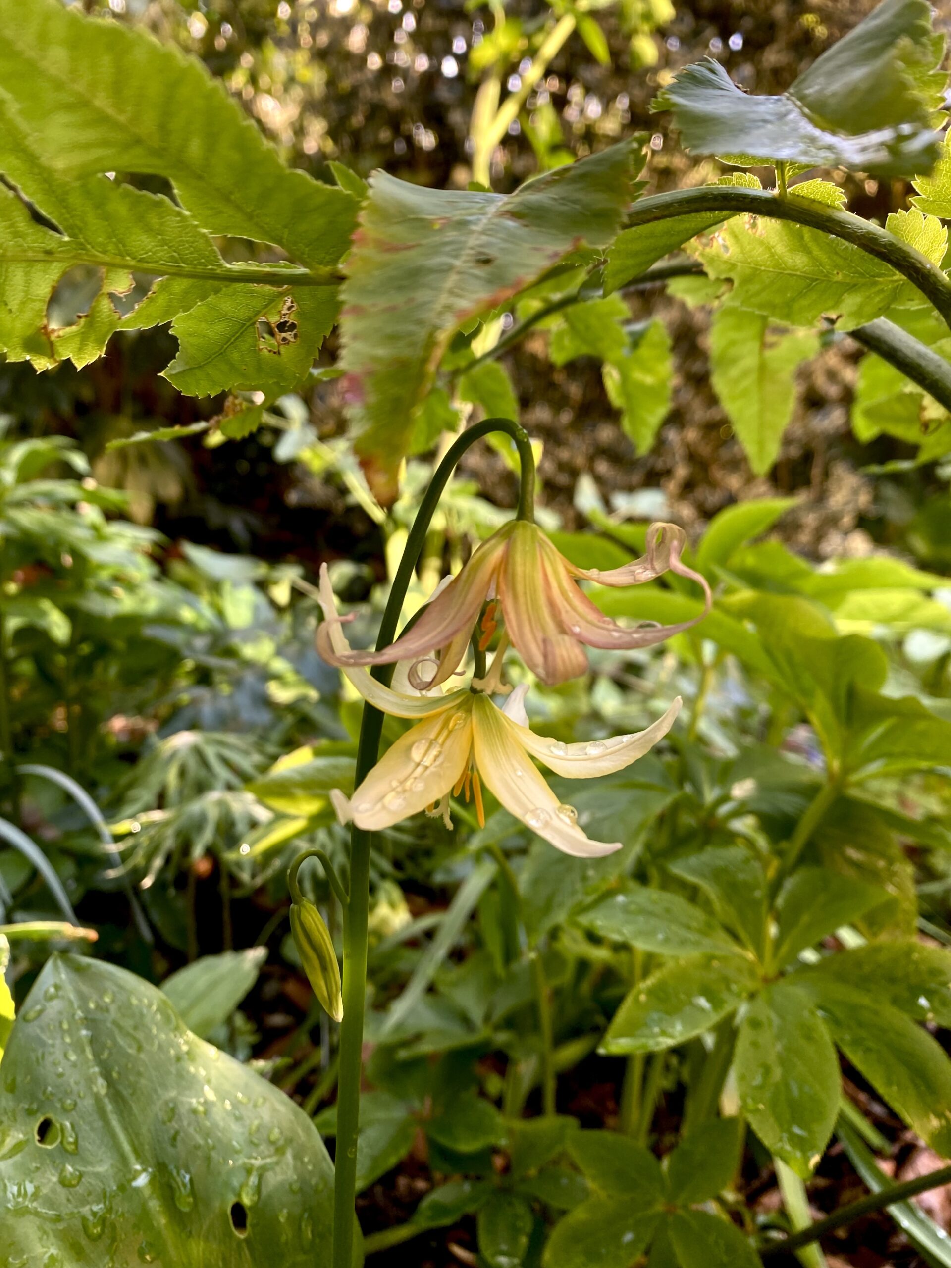 However, my real love is for shady woodland plants, so I was delighted to find that the bottom half of the garden is under the shade of a plane tree. Here, I planted some of my favourite woodland ephemerals – erythroniums, cardamine, uvularia and anemones.