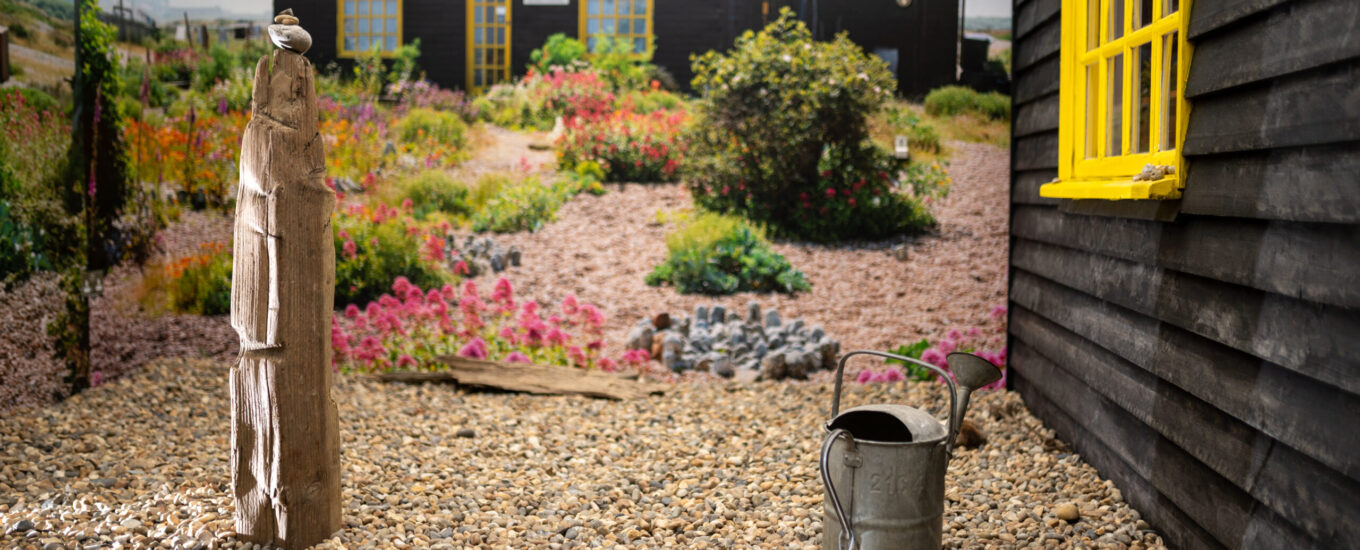 You’ve previously designed for theatre, how did designing an exhibition differ? It differs mostly in the way that the design is encountered, though the two have much in common. The design has a framing role – as it does in theatre – but in this case you’re creating a space to be discovered and explored. I’ve often made work that is immersive – my design for Hamlet took over almost the entire Young Vic – but the project is always to create the right focus on the play or in this case the subject of the exhibition. While the museum was closed during lockdown, our Nave became your workshop! Can you tell us a bit about the process of building and installing? And tricky moments? I like to be able to respond directly to a space and for the design to evolve within it. Lockdown meant that we could make everything on site and that we had the time to work in a pleasurable and creative way. It allowed me recruit talented people (like Emma Hayward from Punchdrunk – who built with me; and Tash Shepherd – the brilliant scene painter) who might normally not have been available. Tricky moments? We needed the long arms of Philip Norman (Garden Museum Volunteer) a few times, and finding that two tonnes of shingle need washing was a bit of a shock. The timber we had left got made into the 30’ navigation beacon. Standing that up was a bit hairy and probably not unlike building Stonehenge – but without Druids.