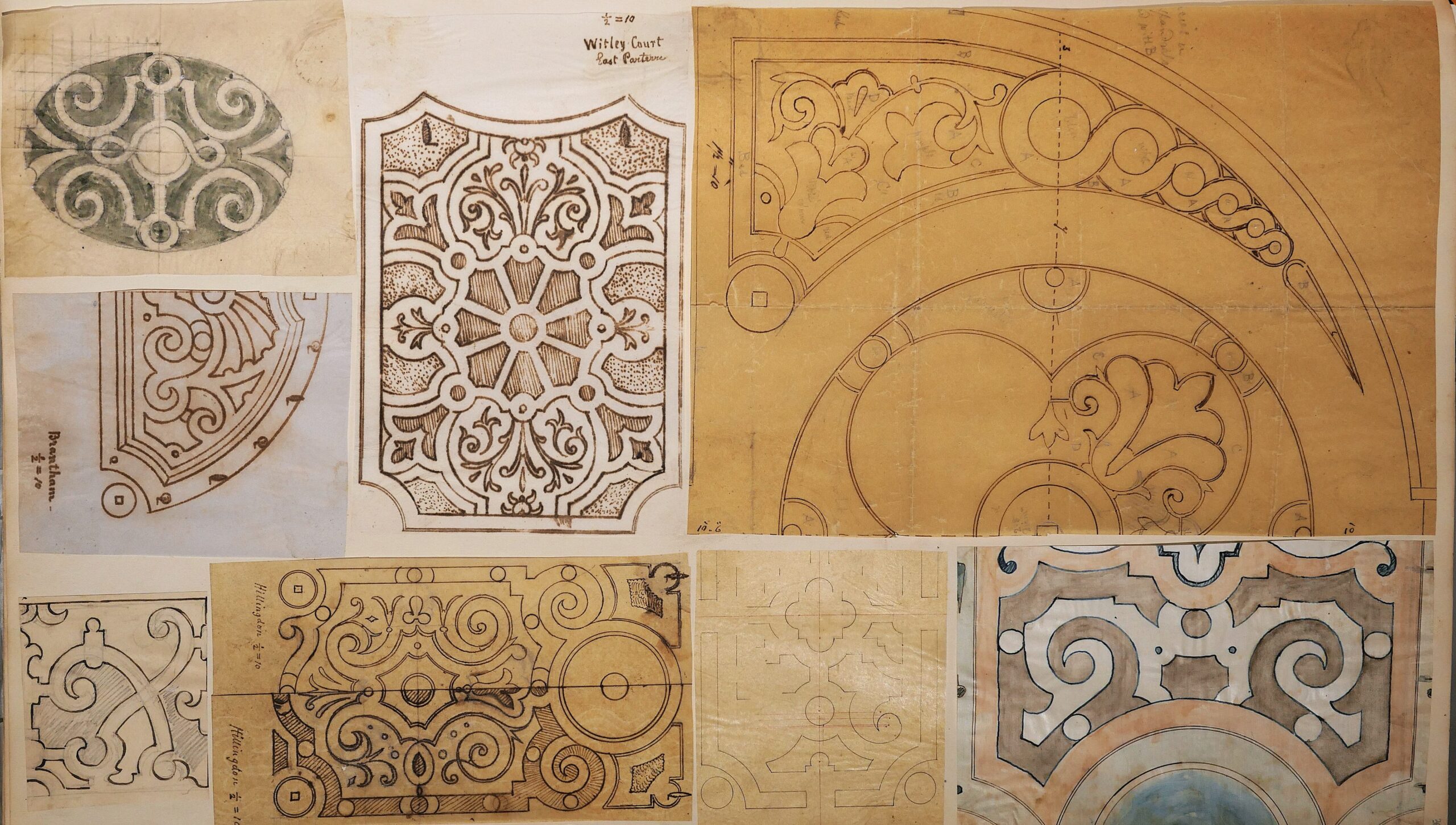 William Andrews Nesfield was born in 1793 in County Durham. After a career in the military he took up watercolour painting, followed later by a career as a landscape architect. He quickly became one of the most sought-after landscape architects of the mid-Victorian era, and set up a professional dynasty with his sons. The archive contains detailed designs for the iconic fountain at Witley Court, even including intricate preparatory studies sketched by William Nesfield of the fish and seashells that feature. The fountain and gardens were recently the subject of significant restoration, and still attract many visitors each year. Other surviving designs represented in the archive are the spiral fountain at Alton Towers, and the parterres along the Avenue Gardens at Regent’s Park.