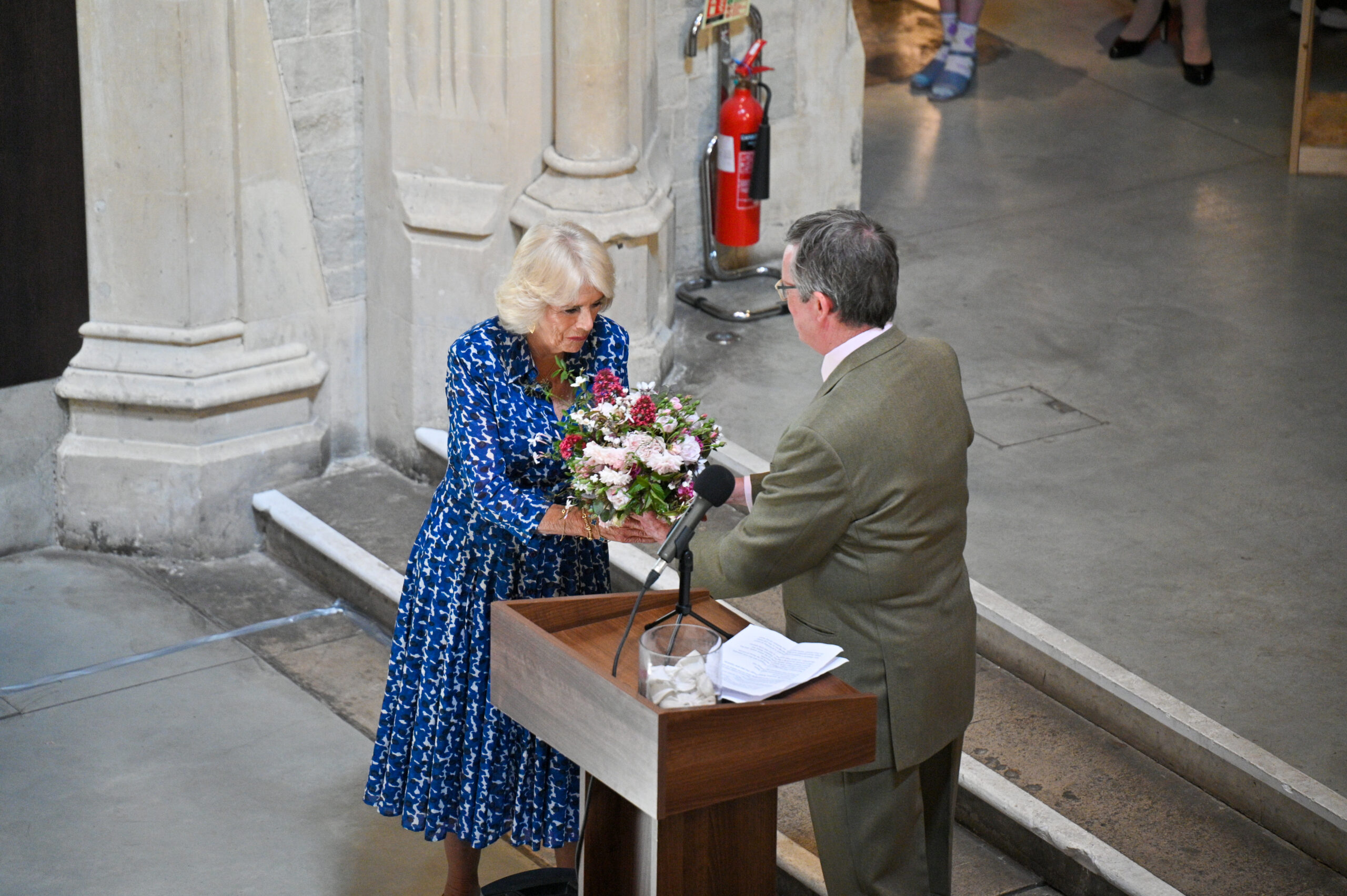 Royal Florist Shane Connolly presents Her Majesty with a bouquet of flowers