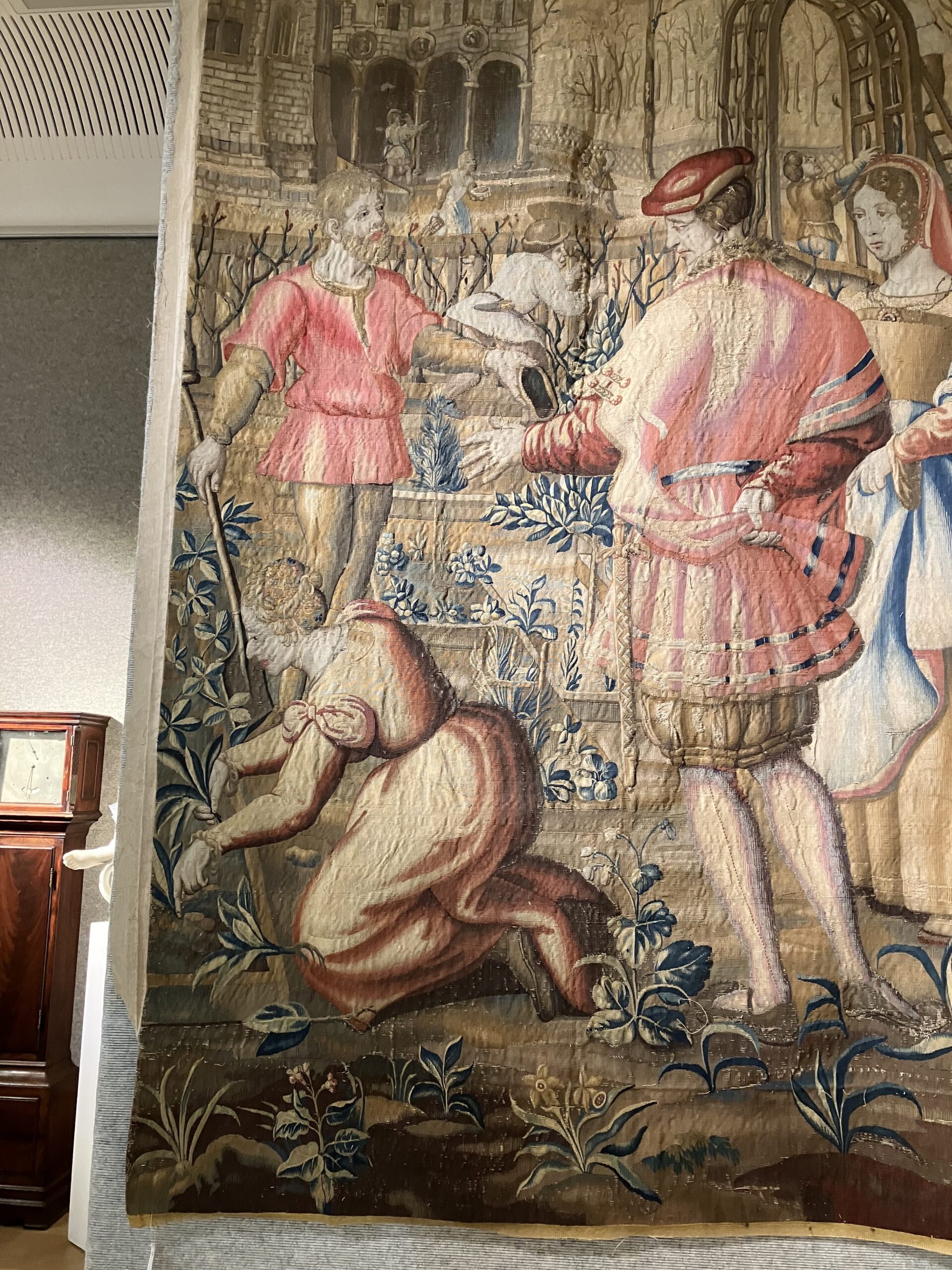The tapestry was purchased thanks to support from the Arts Council England/V&A Purchase Grant Fund and Art Fund. And we are especially thankful to our Patrons who supported its purchase and whose contributions will enable us to carry out conservation work so that it can go on display shortly.