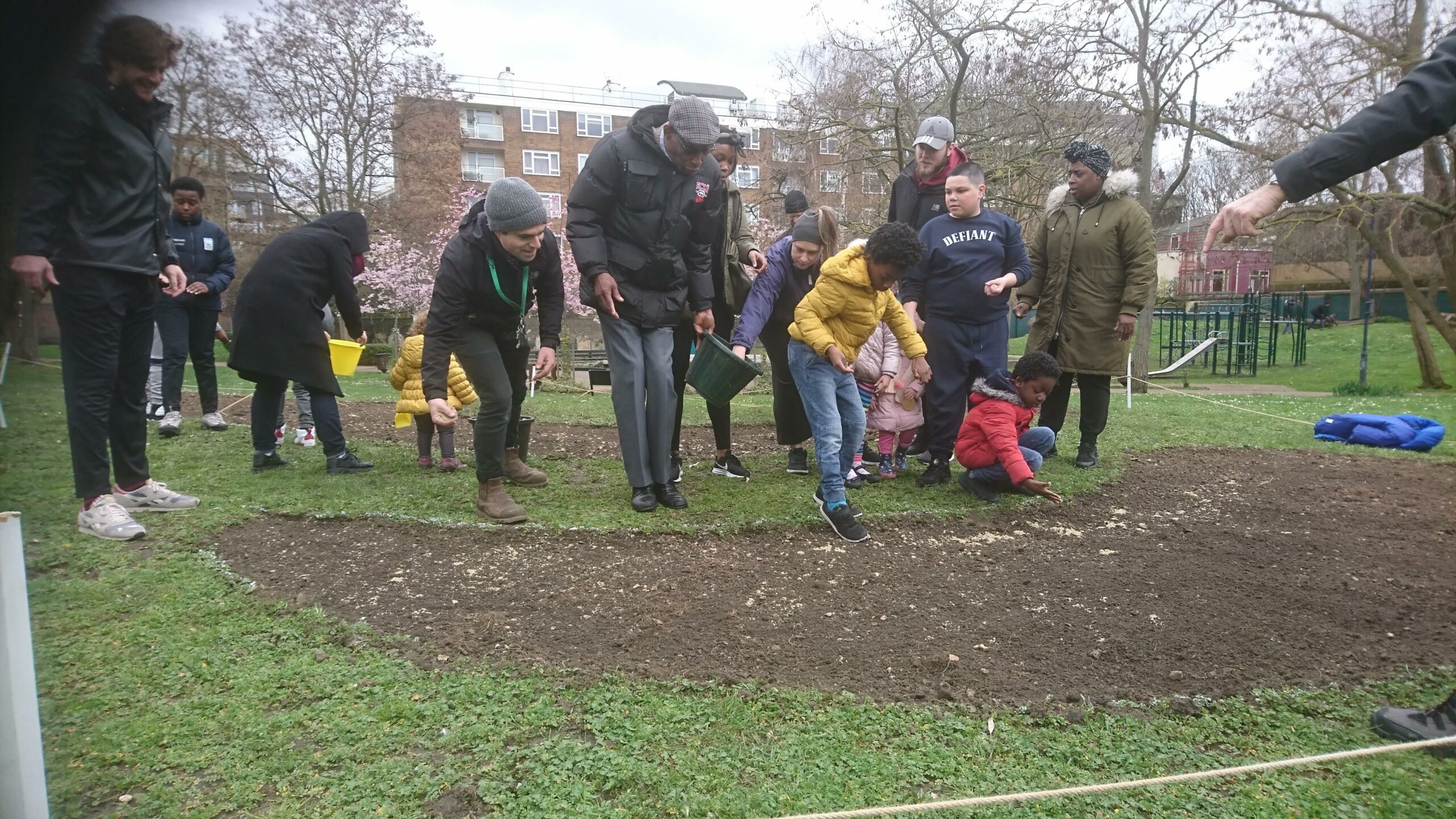 So, where is Old Paradise Gardens? It’s that patch of green which you glimpse across the road from the café, or just over the railings if you park your car on Lambeth High Street. You look across to the railway arches slowing into Waterloo; on two sides are the flats of the Whitgift Estate. It is not (yet) a postcard-pretty park. But it has an interesting past and is precious to our neighbourhood. One Sunday in April we will gather to sow a meadow for a third spring.
