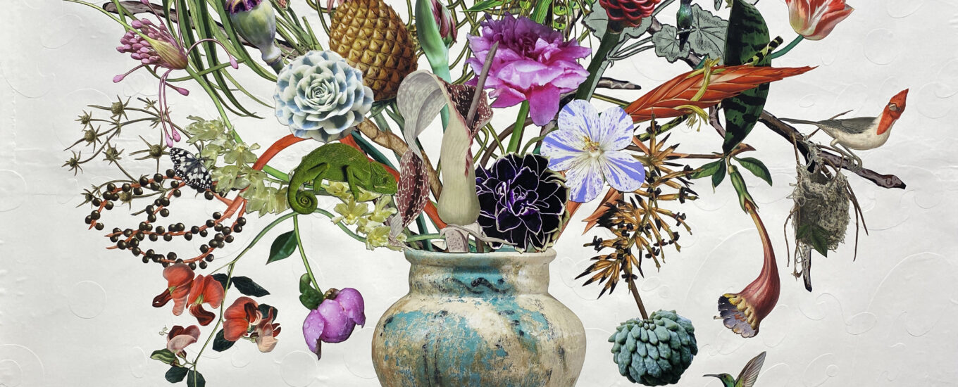 I did not see this body of work, the botanical collages, coming. I was always interested in plants but I assiduously kept it out of my fine art. I came of age as an artist in a time when beauty, nature, flowers, any of that was seriously frowned upon.