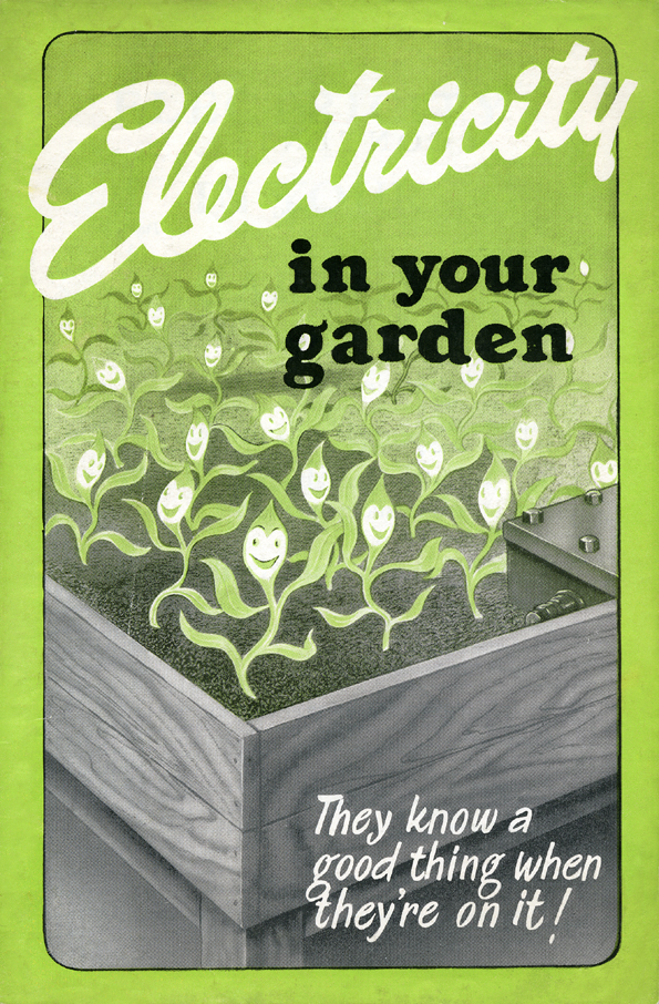 ‘Electricity in your Garden’, a booklet explaining the possible uses for electrical equipment in your garden, published by the British Electrical Development Association, Savoy Hill, London in 1953. From a selection of nurserymen’s catalogues collected in 1953 by Joan & Eric Basden to commemorate the coronation of Queen Elizabeth II.