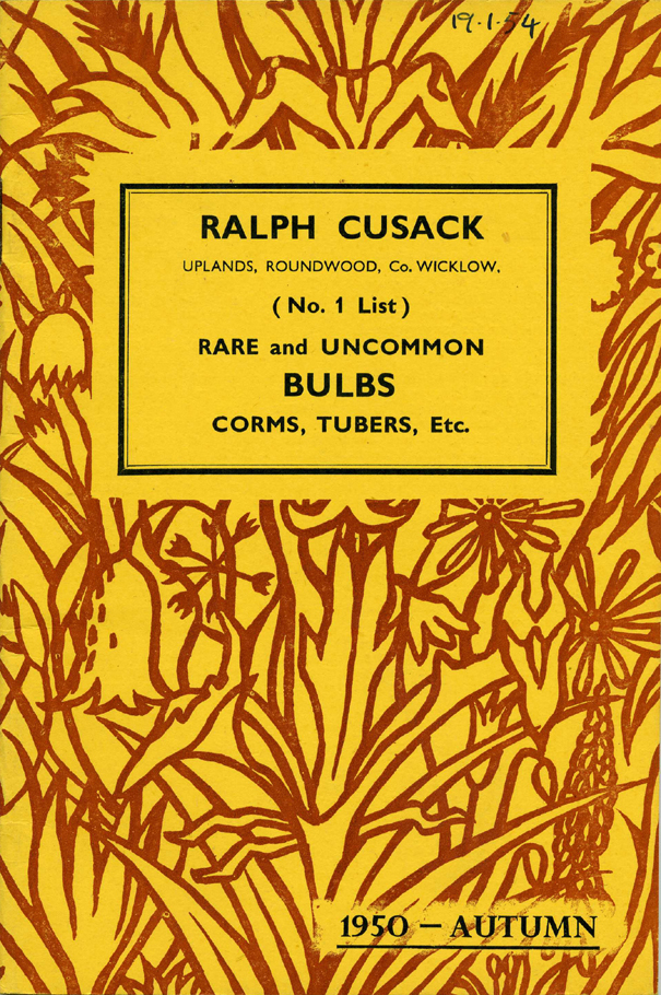 Rare and Uncommon Bulbs – catalogue of bulbs, corms and tubers from Ralph Cusack, Uplands, Roundwood in Co. Wicklow, Ireland, dated 1950. From a selection of nurserymen’s catalogues collected in 1953 by Joan & Eric Basden to commemorate the coronation of Queen Elizabeth II.
