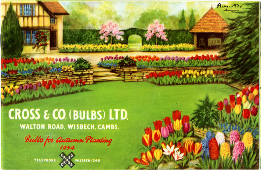 Catalogue of bulbs and roses for autumn planting from Cross & Co (Bulbs)Ltd, Walton Road in Wisbech, Cambridgeshire, dated 1954. From a selection of nurserymen’s catalogues collected in 1953 by Joan & Eric Basden to commemorate the coronation of Queen Elizabeth II.