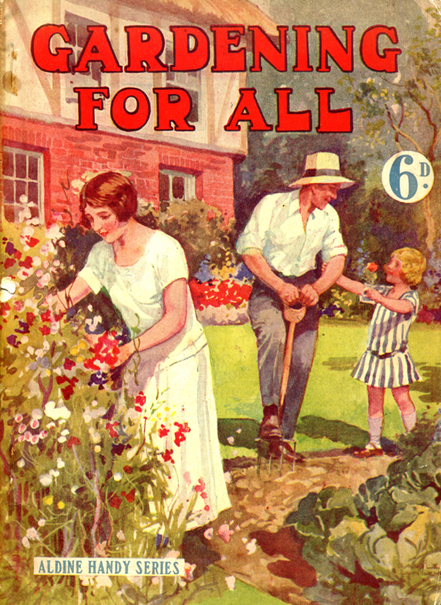 A paperback booklet titled, Gardening for All, with gardening instructions for the amateur gardener. Published c.1930 by the Aldine Publishing Co. Ltd, Goodship House & Crown Court, Chancery Lane , London and price 6d.