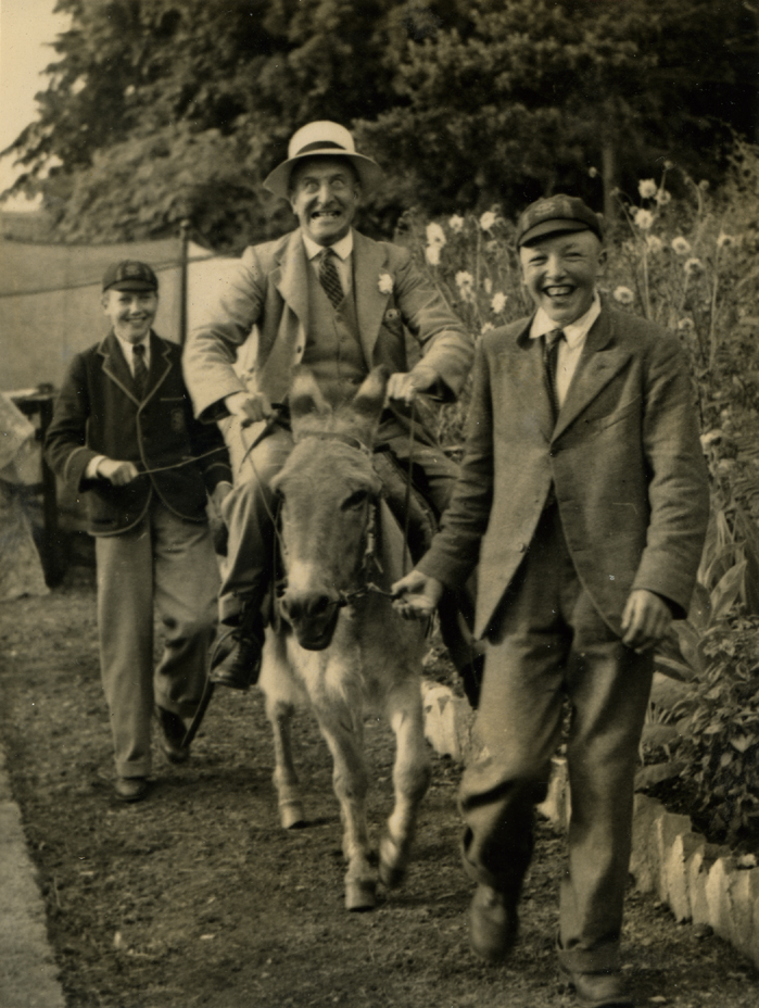 Photograph of donkey rides at a garden fete at an unknown location. Undated, but probably c.1930.