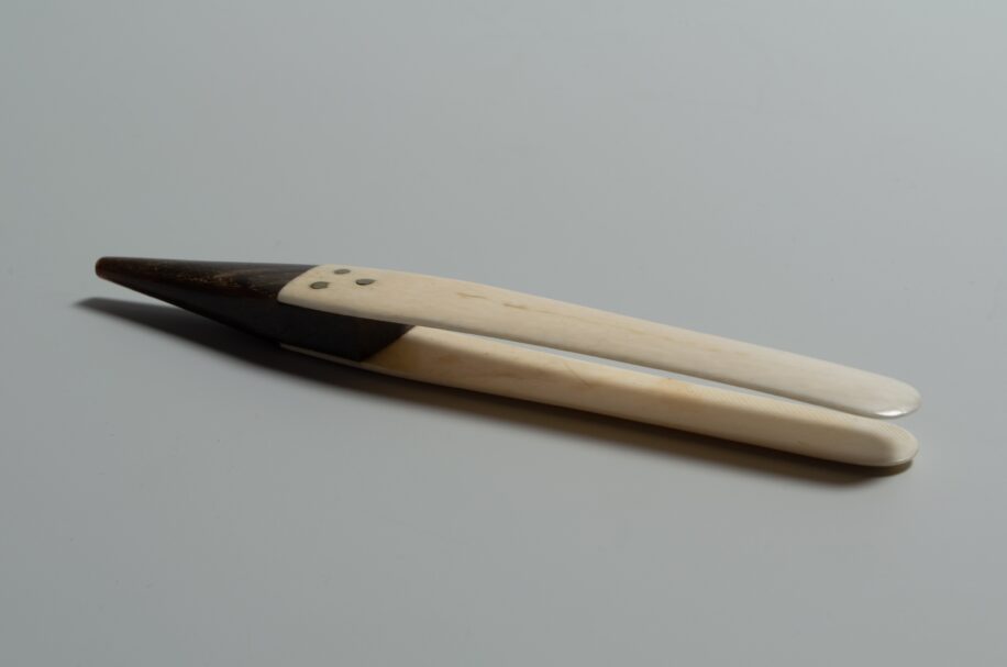 Early seed dibbers were made from bone. They were used for many different tasks such as picking up seeds or removing leaves and tidying flowers. The pointed end might have been used for dibbing holes in which to plant seeds.