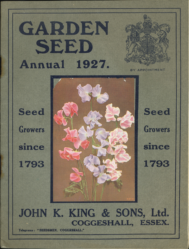The 1927 annual seed catalogue from John K. King & Sons Ltd, of Coggeshall in Essex – ‘Seed growers since 1793’. Gift Miss S.L. Smith.