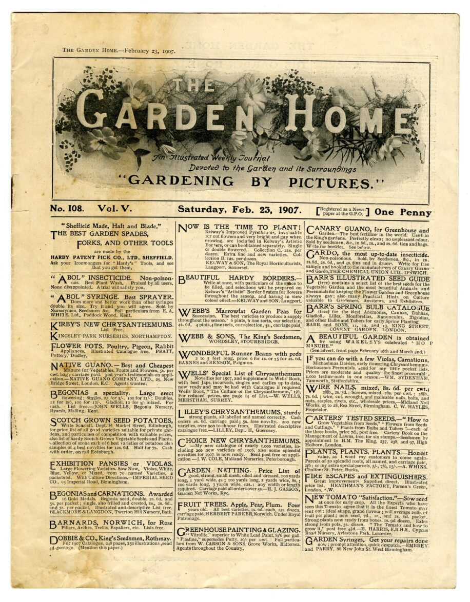 This early garden journal was an illustrated weekly. This issue contains a diagram for mouse traps and an advertisement for sweet peas.