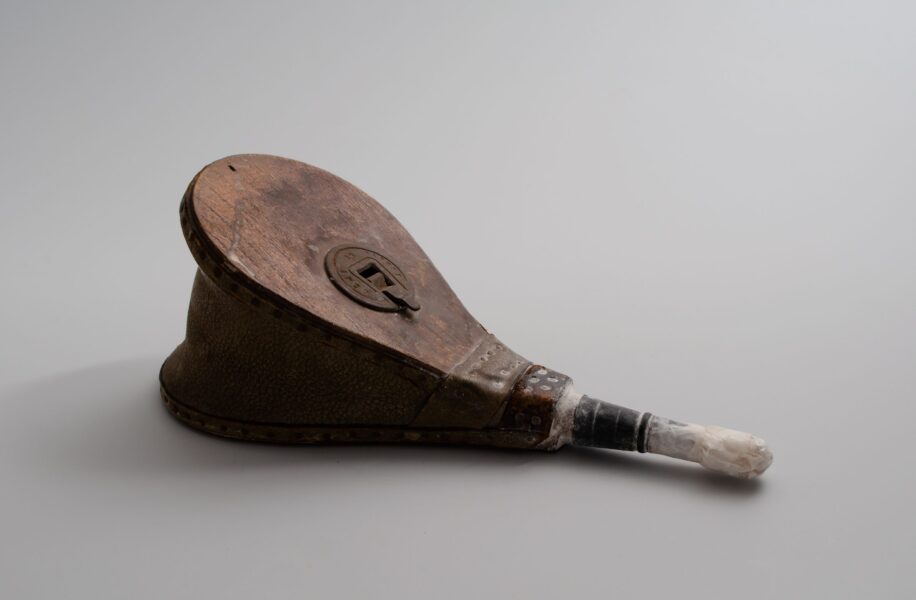This hand puffer would have been used to combat flies and aphids in the garden. The small bellows blow insecticide powder onto discreet areas of crops or planting.