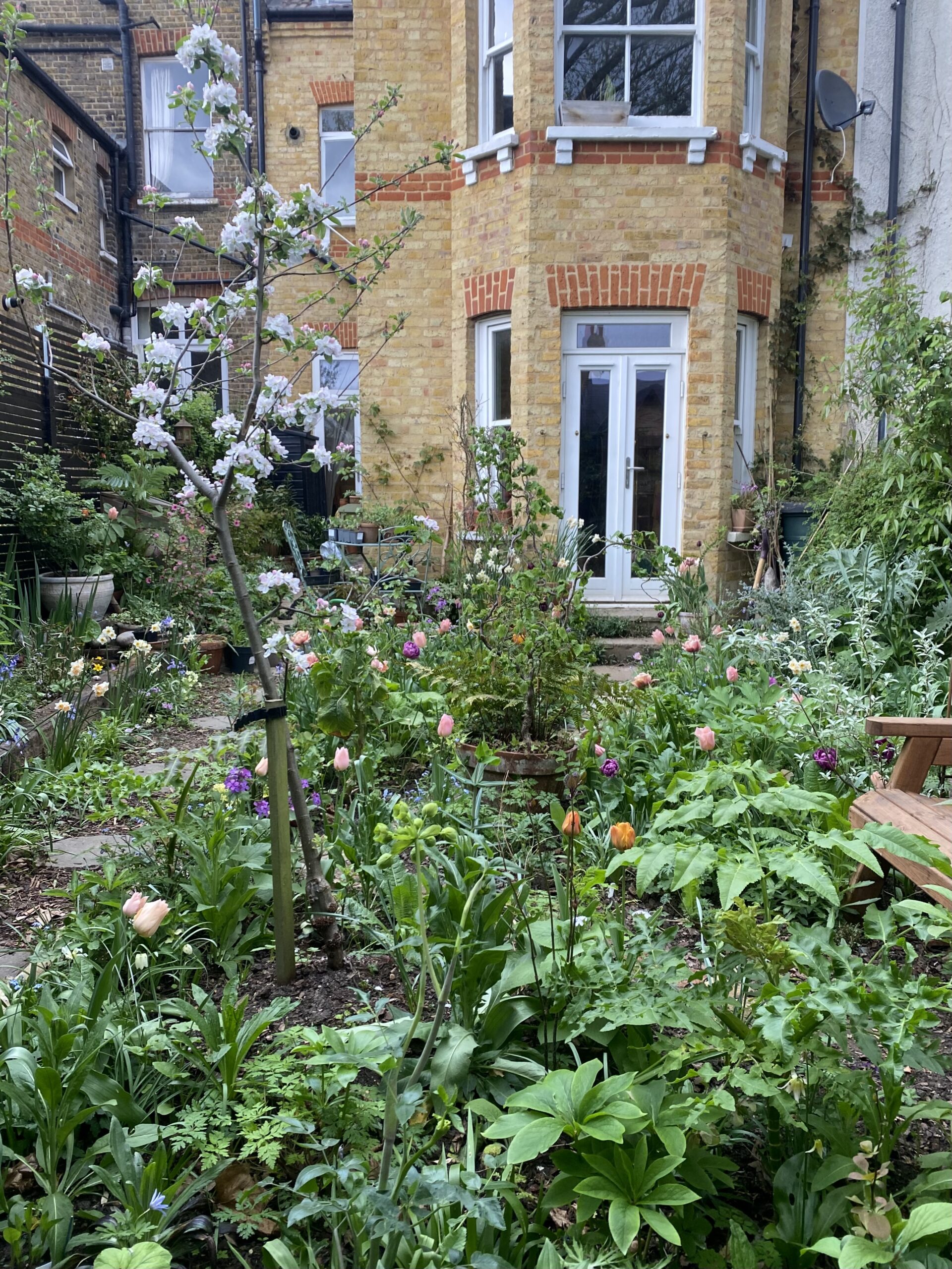 “We’ve been in our garden for less than a year. We were lucky to inherit a collection of mature shrubs from the previous owner who had lived in the house for twenty years, which gives the garden a secluded atmosphere even though it’s overlooked on all sides. Having gardened previously in pots at the front of our flat, I was very excited to have somewhere to call my own, not to mention soil to plant into.