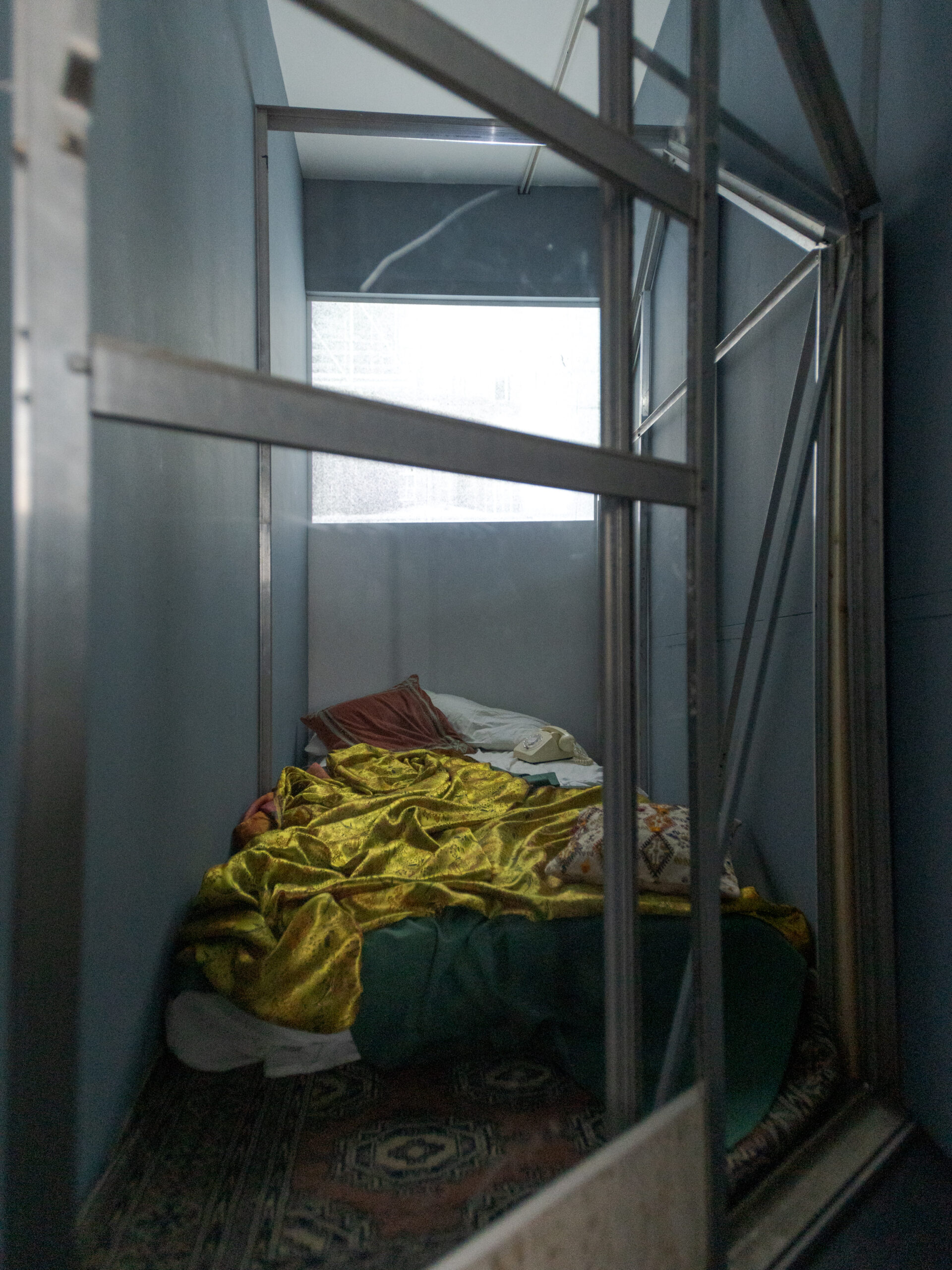 What were some of the most important elements and materials you wanted to incorporate? When I think of Dungeness I think first of the incredible light – hence the overhead lightbox and the very specific colour temperature. Then, of course, we had to have shingle. Dungeness shingle is very specific and had to come from a local quarry. The feeling of it underfoot was so evocative, and the sound combined perfectly with Simon Fisher Turner’s soundscape. I liked the rough black weatherboarding too. They used to paint it with bitumen, which would have smelled wonderful, but we had the scent of the wax on the walls instead. Part of my old greenhouse finally came in handy to recreate Derek’s bedroom in Bankside.