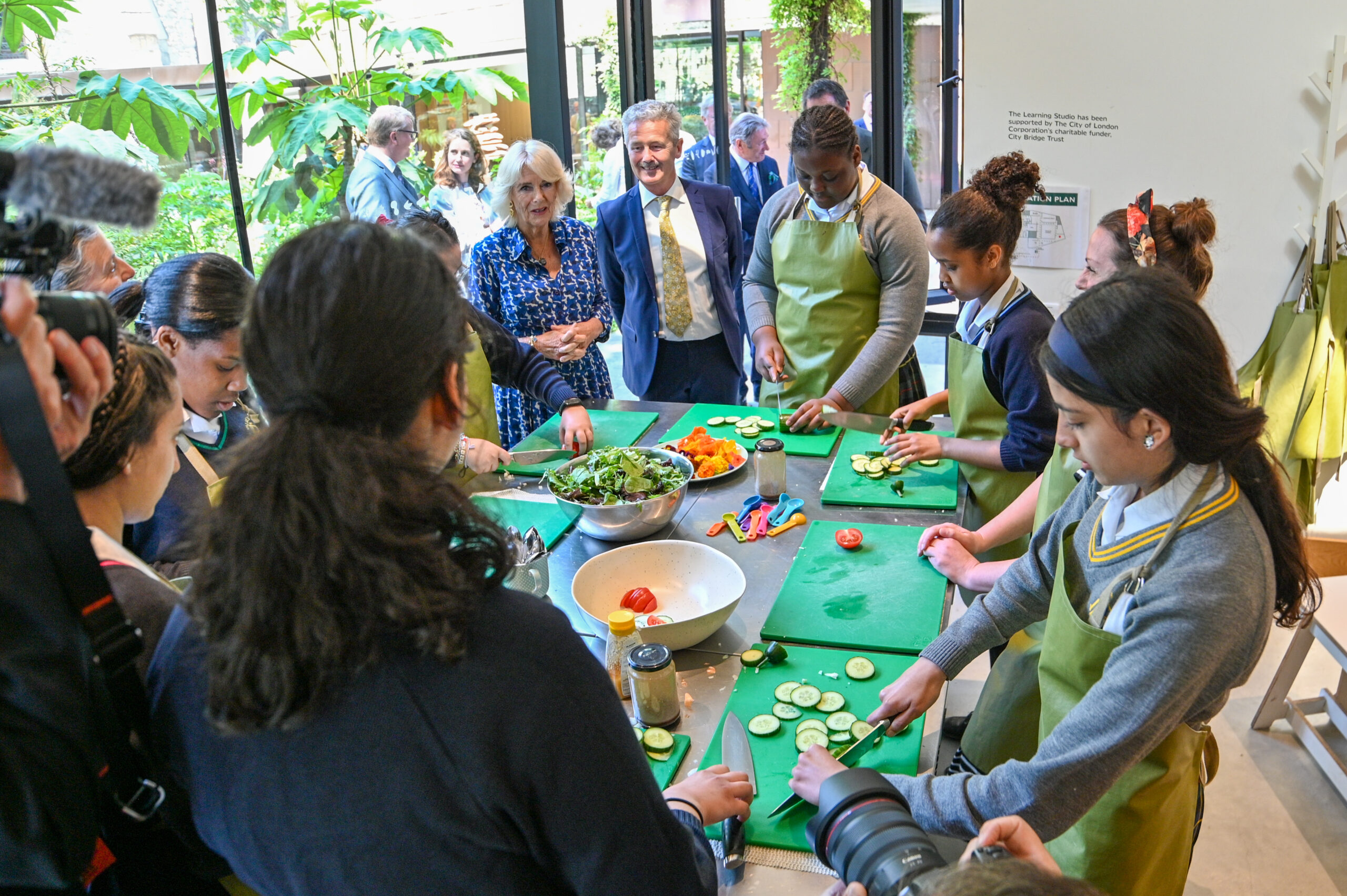 Her Majesty meets local school students enjoying a cooking class in our Learning Studio Kitchen