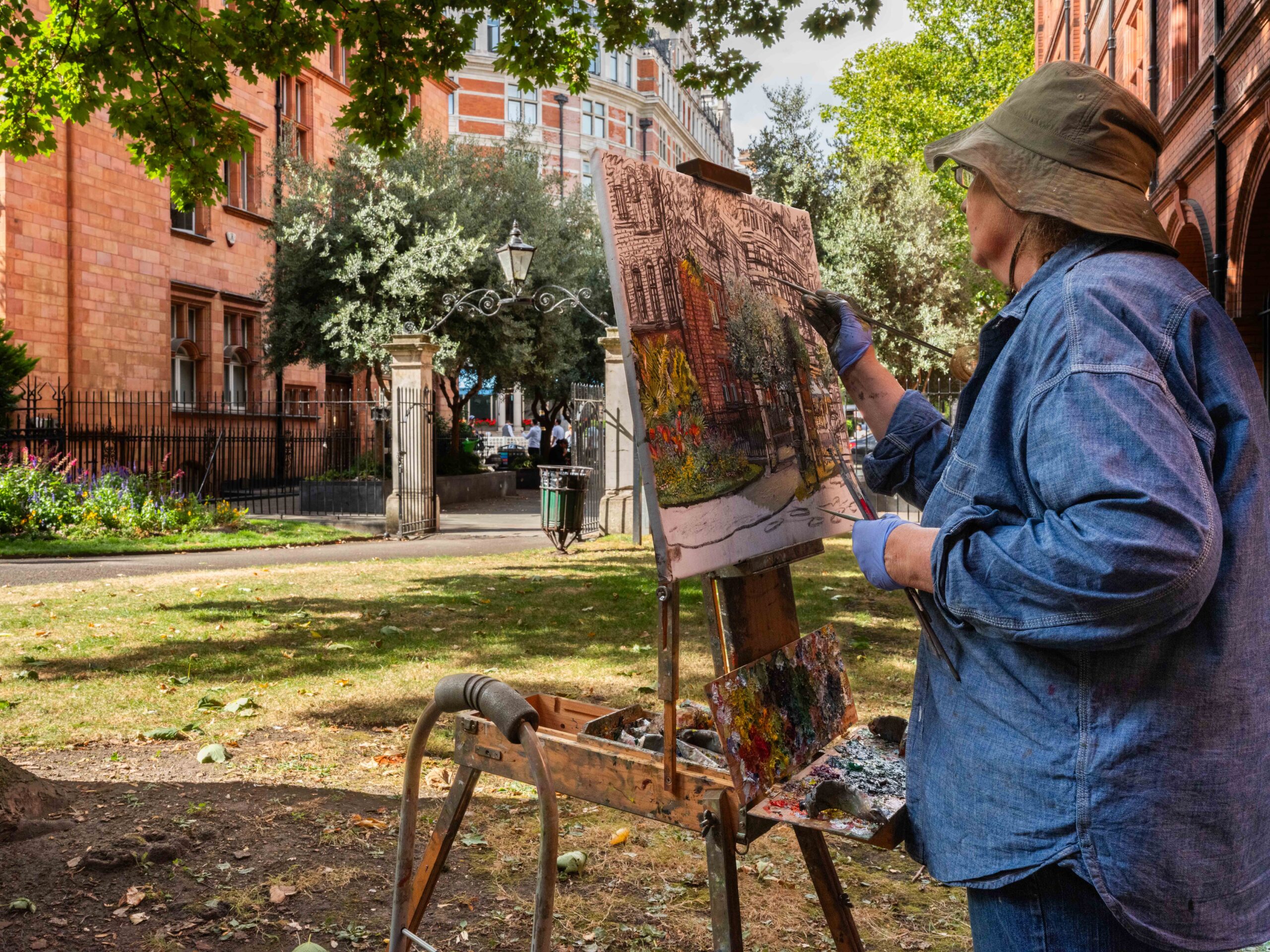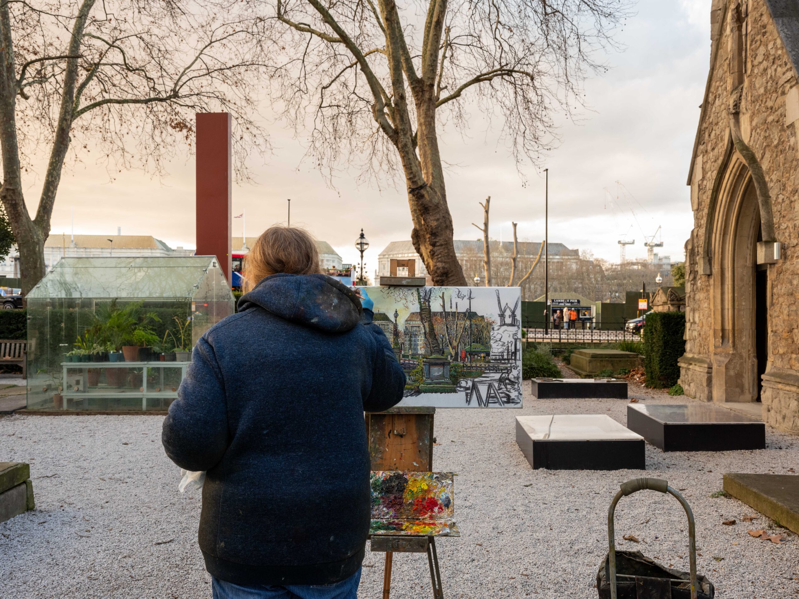 For your exhibition at the Garden Museum, you painted new works of the museum gardens and nearby parks. How did you find the experience of painting in a public space like the museum?