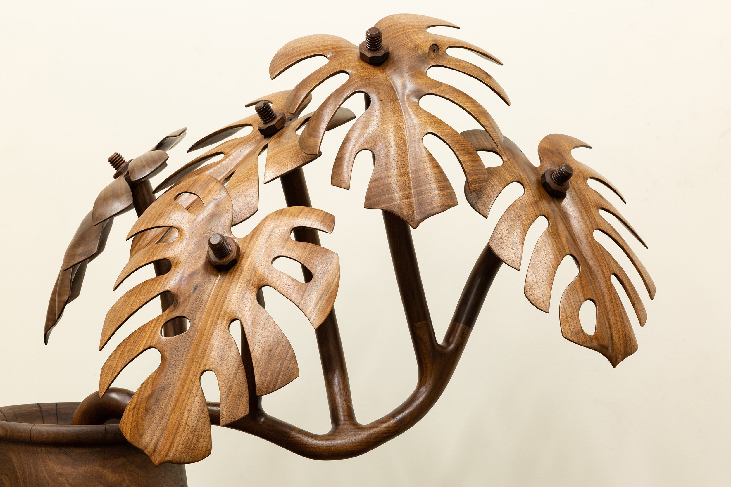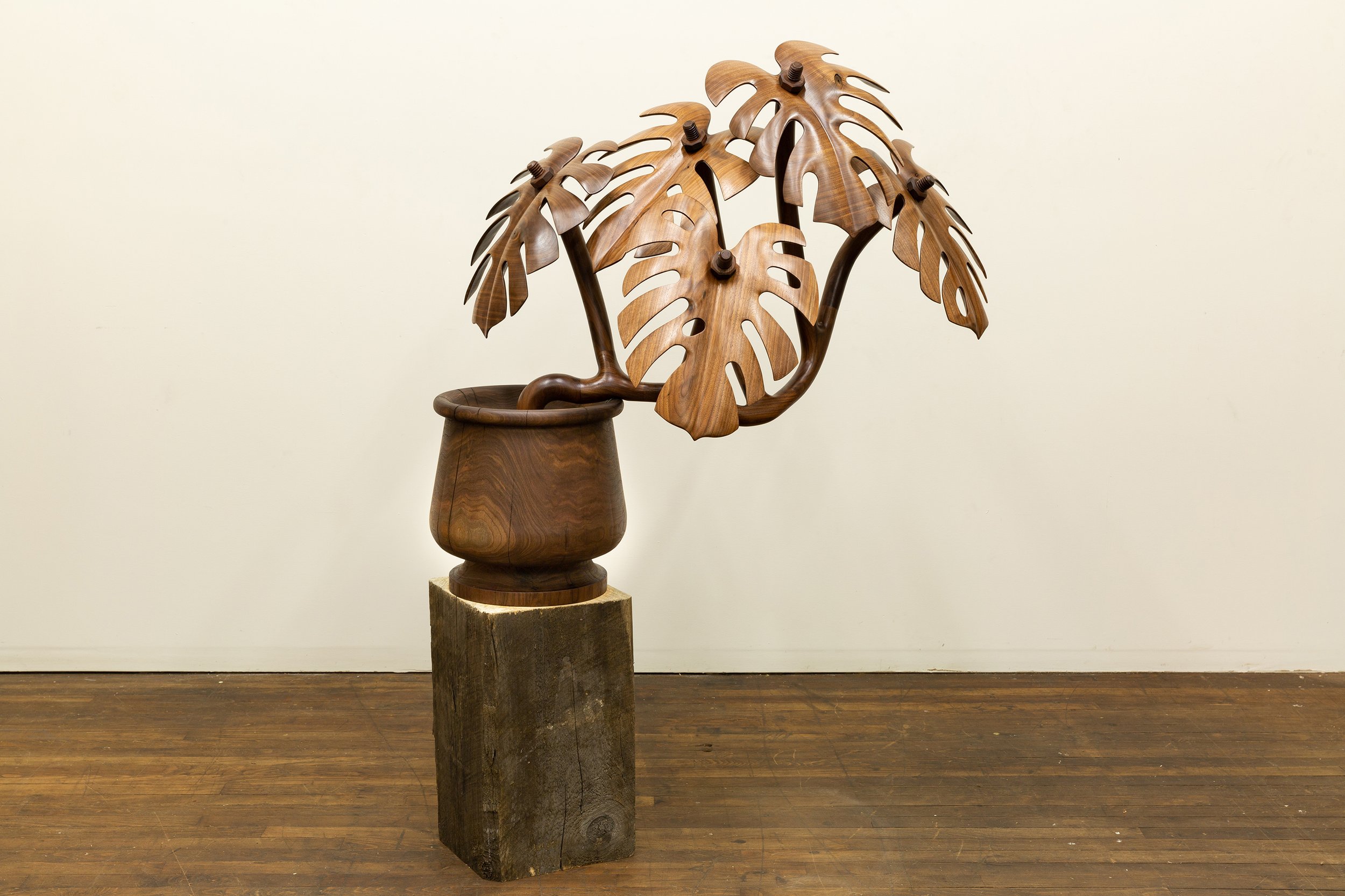 Growing up in my parent’s woodshop in Mexico introduced me to the world of turning trees into things. A woodworking world where each tool has its own language, each piece of wood shows the passing of time on its skin, and where one is able to communicate through their hands. Mexico is a country where people believe. I grew up seeing people whittle tree branches into saints. The idea that at some point during the carving process, a saint would come live inside the stick overawed me. I am still asking myself how that happens. At what point does the ghost enter the wood? I see plants as our silent roommates who get to witness our lives. To me, house plants have unique personalities that often are invisible to the naked eye, unless you spend enough time with them. With each plant I carve, I strive to imbue into it a spark of life.