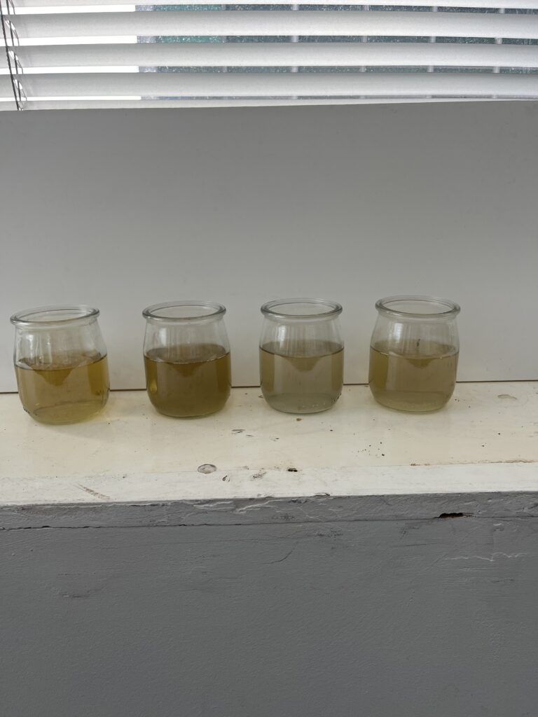 The water samples taken at each stage, showed the tapestry was becoming cleaner. When the samples became clear the tapestry had a final rinse with deionised water. Deionised water is much purer than tap water and this rinsing stage removed any impurities or salts that occur naturally in tap water.