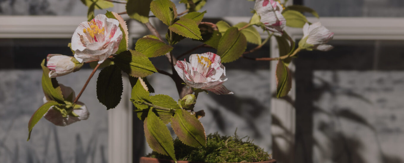 I chose to develop a camellia as I felt Spry would also have enjoyed it. I have not yet seen a camellia in real life—so it was a good challenge that I was up to try to create one sight unseen, so to speak. Also when I showed it to Shane and Robin Lucas (exhibition designer) — we collectively knew that we wanted to do it.