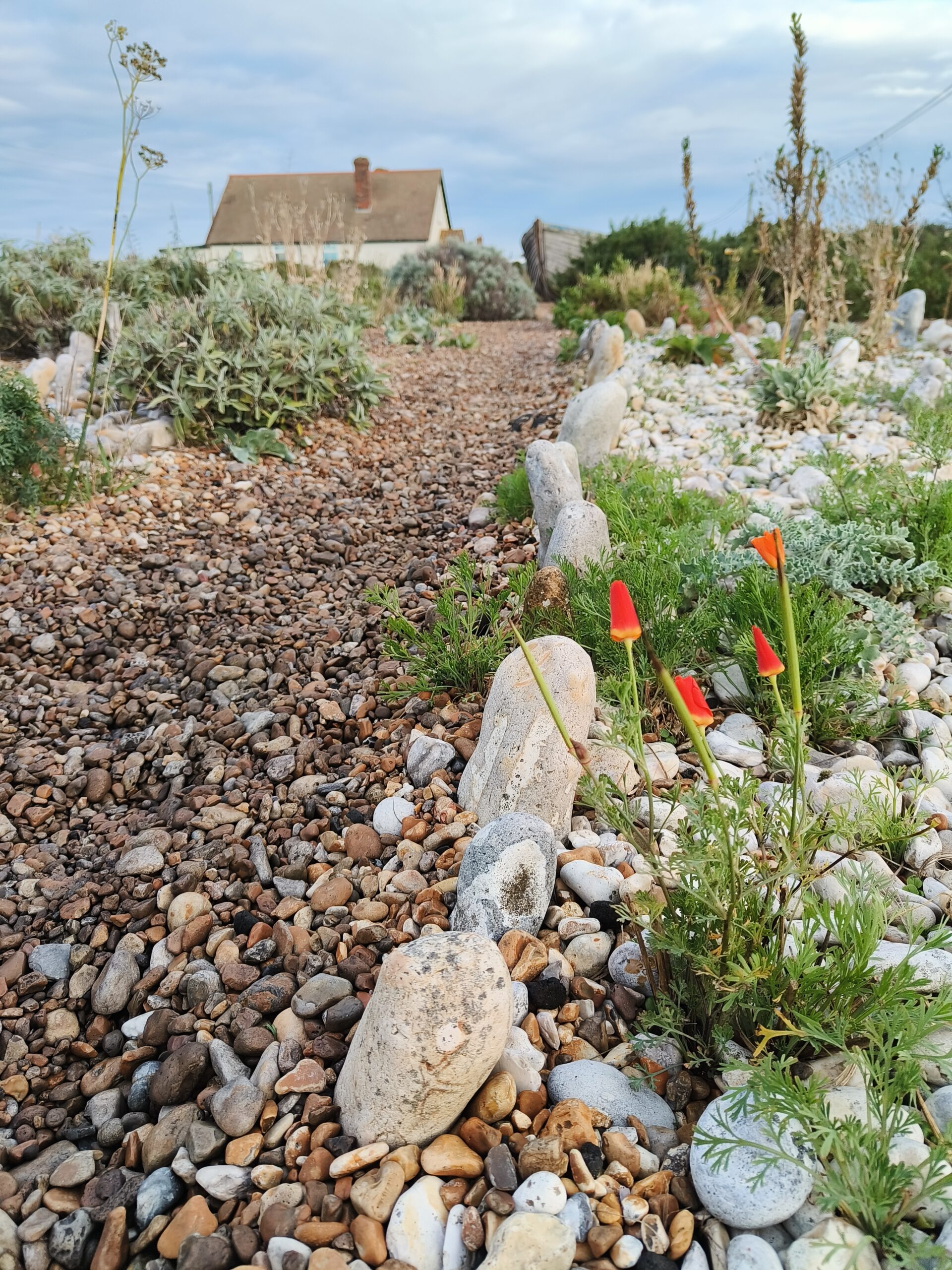 The cottage and its concentric circles of poppies, irises, roses, echiums, sea kale, foxgloves and many other cultivated plants kissing wild ones, has often been mistaken for a retreat. I no doubt felt like I also needed one after a busy couple of months finishing my masters in Landscape Architecture while beginning new work. What Jarman came for here was not isolation, but confrontation, as Jonny says he arrived here the same year he was diagnosed with HIV. Slowly planting a boundary-less garden through the organic collection of stones, driftwood and experimenting with plants was a form of political protest against the rigidity and judgement of both British society and its horticulture. The cottage became a site for making films, writing, finding strength and solace, and for showing how despite the harsh landscape, things could grow.