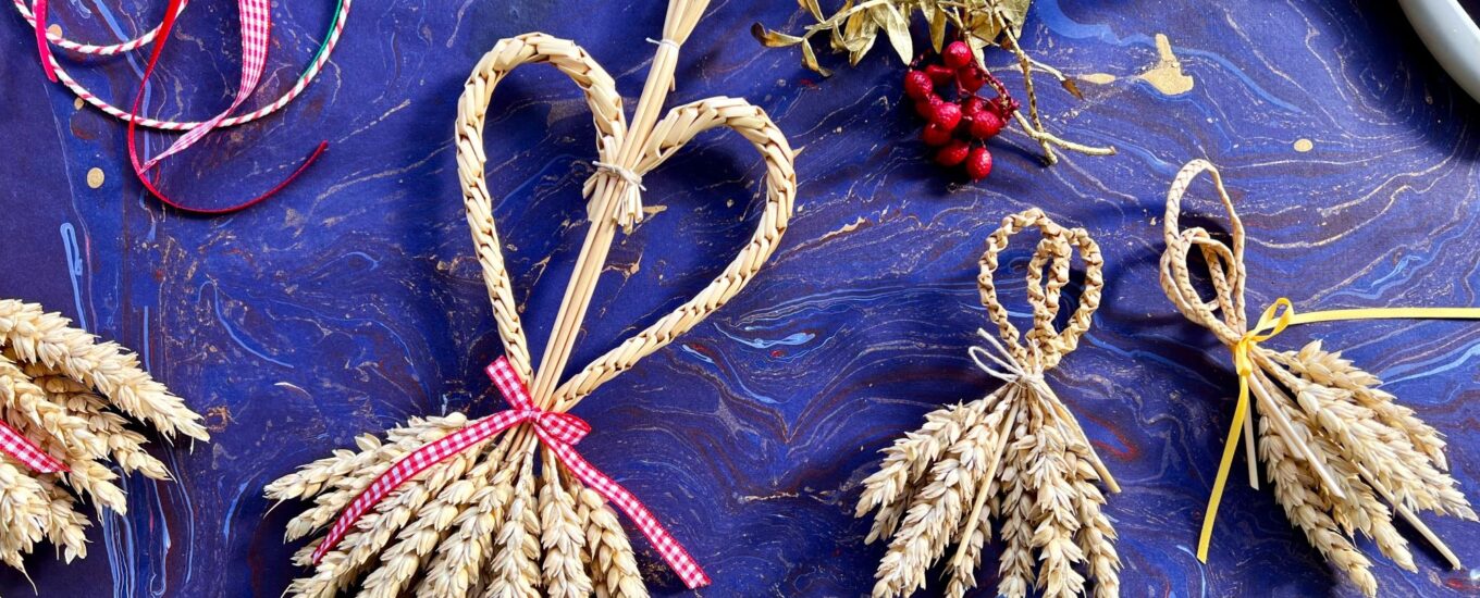 Penny Maltby from the Ministry of Straw will be leading this fun workshop in how to make a harvest trophy decoration. Using traditional corn dolly techniques and heritage wheat, you will learn how to tie the straw workers’ preferred knot and make a small item such as a love knot to practice your skills. Penny will then show you how to make your harvest trophy in a round or heart shape using the arrow plait and additional wheat heads, all adorned with a ribbon of your choice.