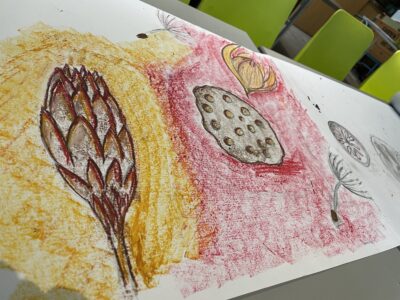 Inspired by our exhibition, Rory McEwen: Nature’s Song, we will be using charcoal and oil pastels to draw plants such as, chillies, corn on the cob and onions.